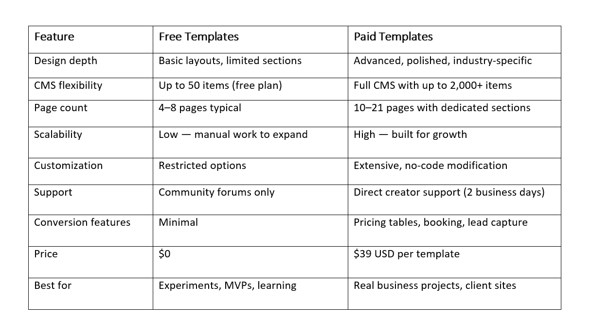 Free vs Paid Webflow Templates