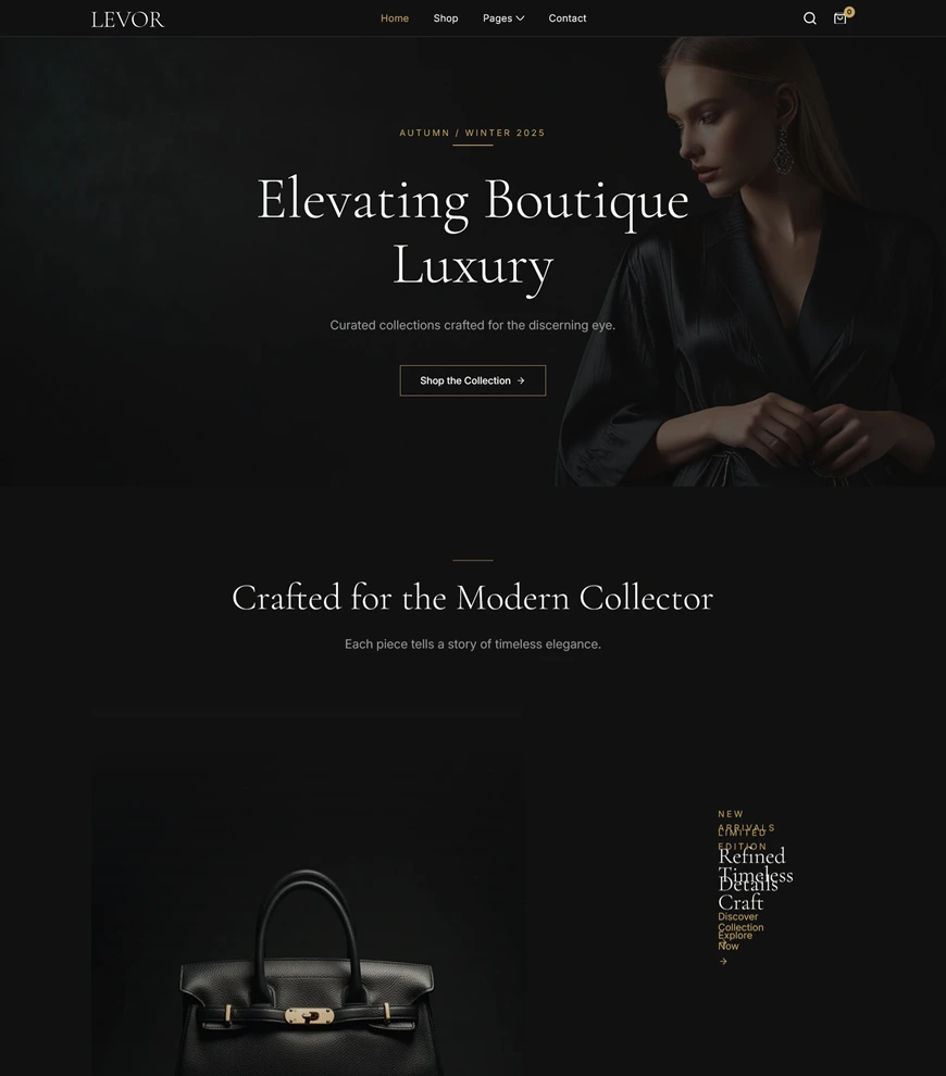 Levor is a stunning ecommerce Webflow template designed for fashion brands, boutique owners, jewelry stores, and lifestyle businesses.