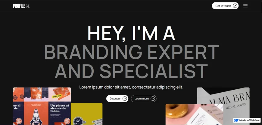 ProFileX by Influx® is a clean free template built for designers, photographers, freelancers, and boutique agencies. It follows the Client-First naming structure, making it easier for experienced Webflow users to customize.